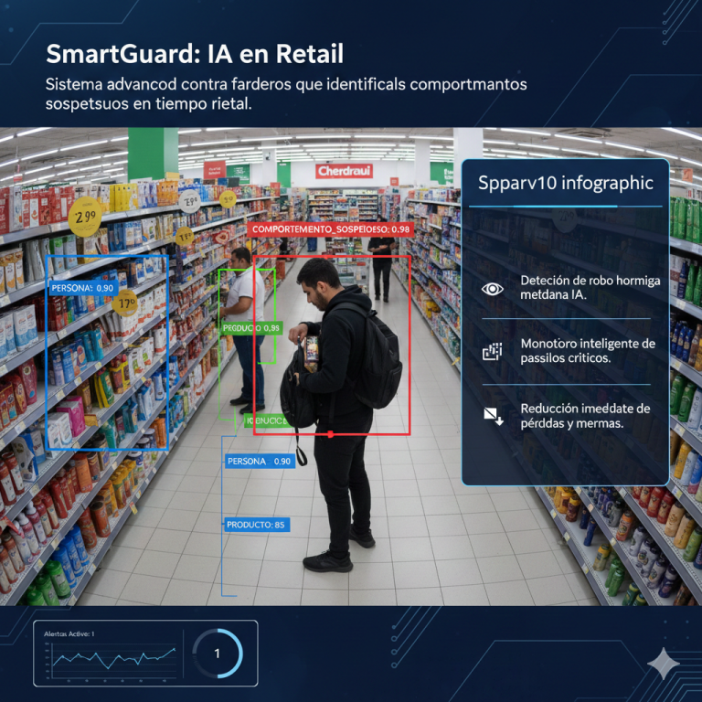 Sistema avanzado de videovigilancia inteligente diseñado para detectar pérdidas y comportamientos sospechosos en tiendas.